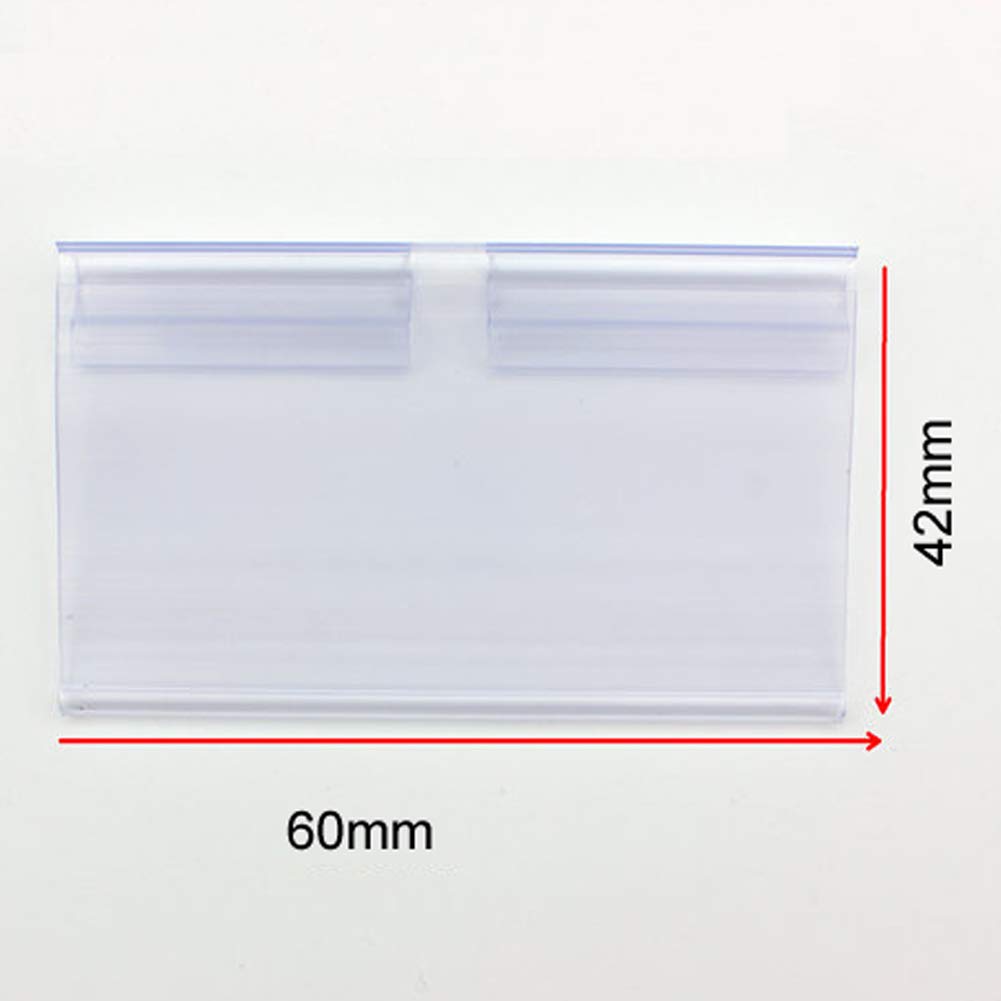 - Perfect Size for Most Products — Measuring 60x42MM, these holders are sized to fit most standard price tags and product information cards. They are versatile enough for clothing, electronics, groceries, and more, fitting neatly onto wire shelves without obstructing merchandise.