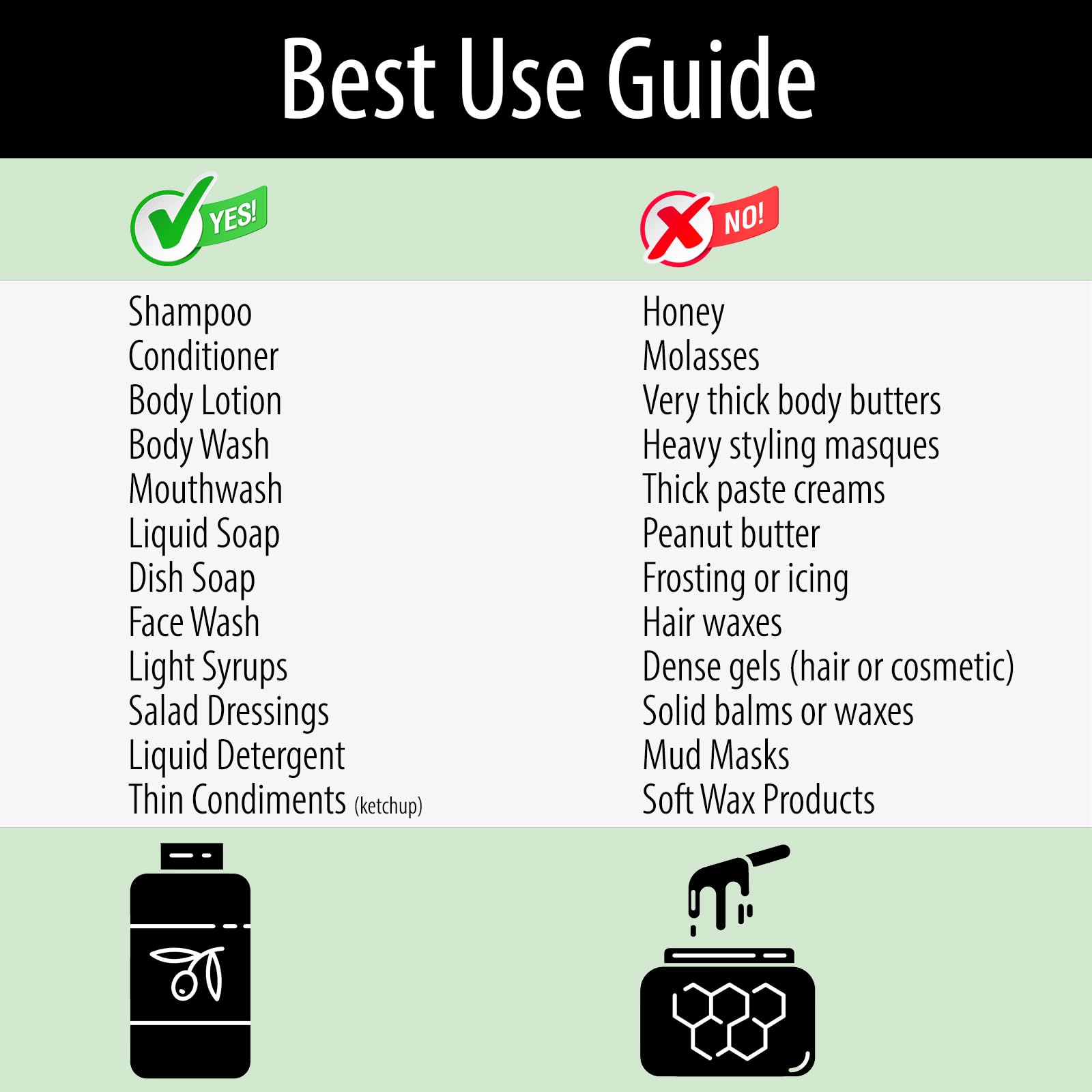Second Time Purchasing These are great and inexpensive. They're universal for tall shampoo bottles, so it's easy to purchase the shampoo I want, and these so that I don't have to try to struggle with flipping over the bottle to get the shampoo out. They also get every last drop out of the bottle. I ran outa while ago, and thought I'd just remove the pump to get some more shampoo out, but I was only able to get one additional wash out of the bottle.Will definitely purchase again!