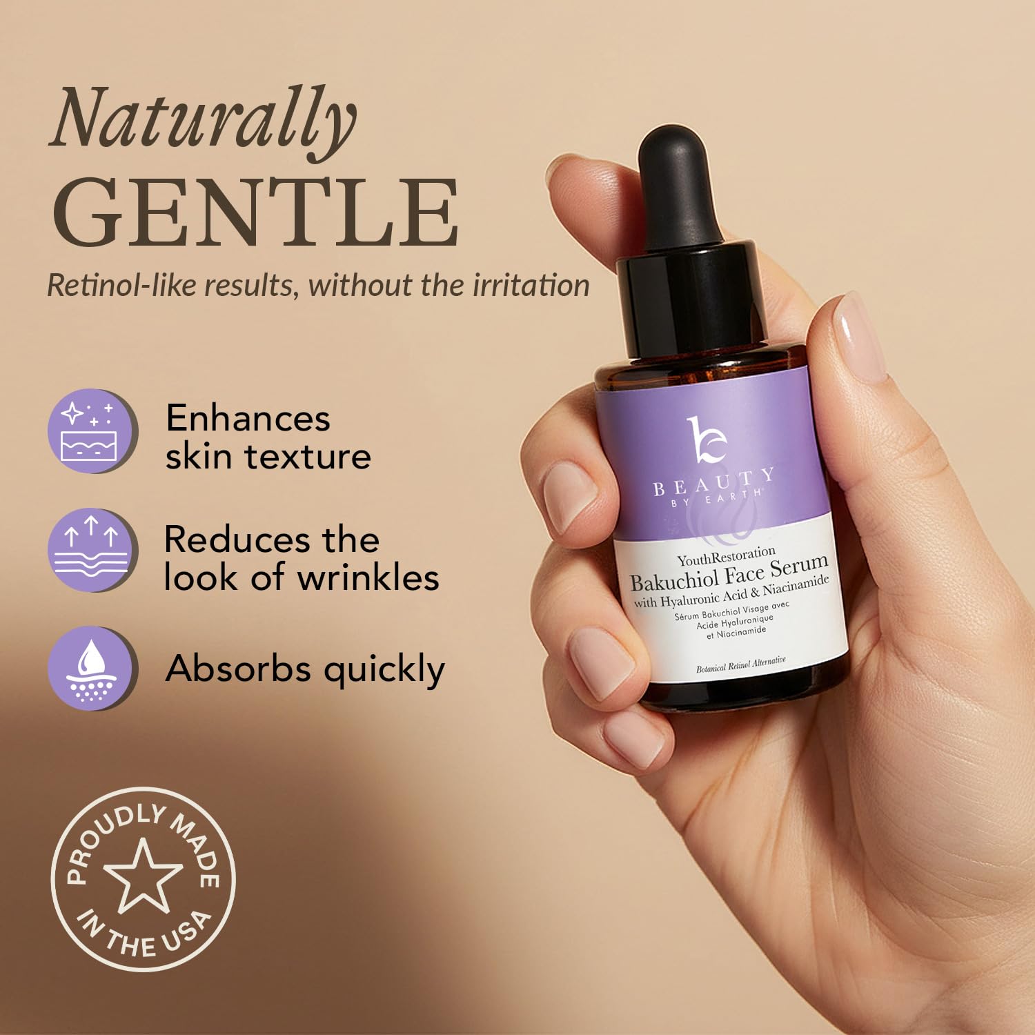 Noticed a real change in my skin after three months and wish I had a good before photo I was curious about bakuchiol so I started using this serum daily three months ago. Since then I have seen a noticeable improvement in smoothness and my skin tone looks more even. I wish I had a clear before photo to compare because the difference is that good.The texture feels light and it absorbs quickly. No greasiness at all. I did not get any irritation even though retinol can be too strong for my sensitive skin. Instead I have firm and hydrated skin that glows naturally. I also love the subtle berry scent which fades fast so it does not overwhelm.The ingredients list feels clean and organic with hyaluronic acid and niacinamide to boost hydration and brighten. It is vegan and cruelty free and made in the USA which I appreciate. It stands out because so many alternatives feel harsh or cause peeling.My husband even commented that my skin looked more vibrant. Friends asked if I had changed something in my routine. That kind of response makes the product feel really worth it.
