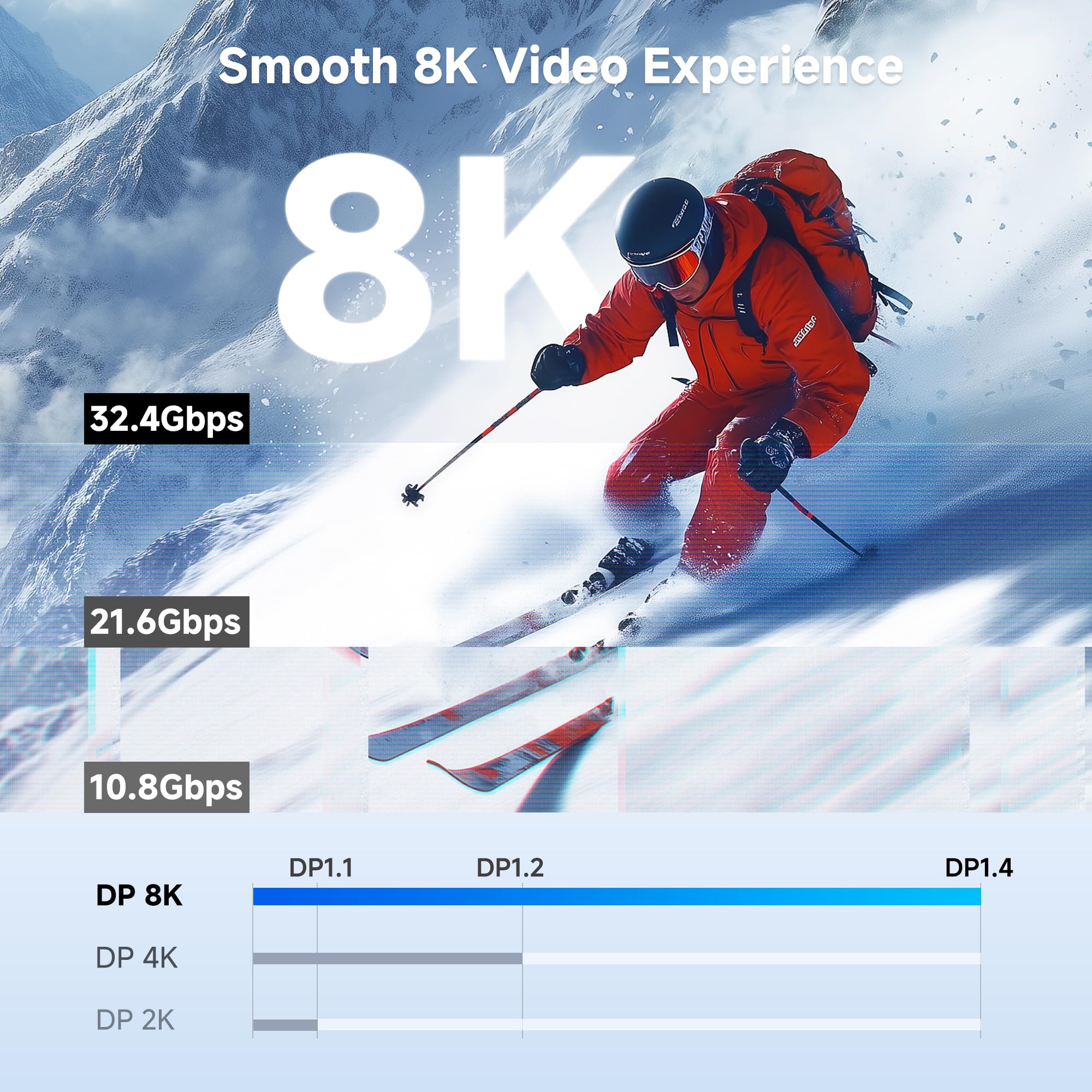 Tired of laggy visuals and stuttering gameplay? Local cables just can't keep up with the demands of modern gaming. The Cable Matters DisplayPort 1.4 Cable is your ticket to a truly immersive experience. Unlike cheap, uncertified cables that promise the world but deliver disappointment, this 6ft VESA Certified cable is built for performance. It supports breathtaking 8K 60Hz and blazing-fast 4K 240Hz, ensuring every frame is rendered with incredible detail and fluidity. This is crucial for graphics cards like the NVIDIA RTX 4080/4090 and AMD RX 6800/6900, where every millisecond counts.