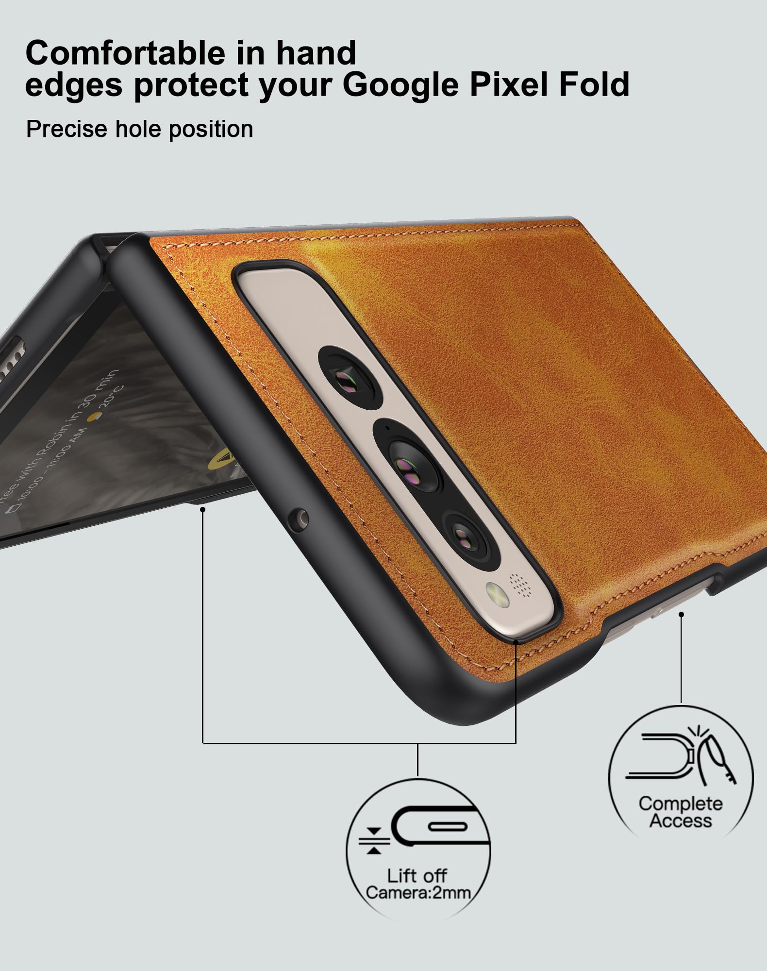 Easy Snap On. Finally have a foldable phone, and needed a case. I chose the Foluu for my Google Pixel Fold. It looked good with the leather back on it. It was easy to snap on the G.P. Fold, and protects my new phone. The case doesn't get in the way of opening the phone, or the screen on the front. Would recommend to someone who is looking for just this sort of thing!