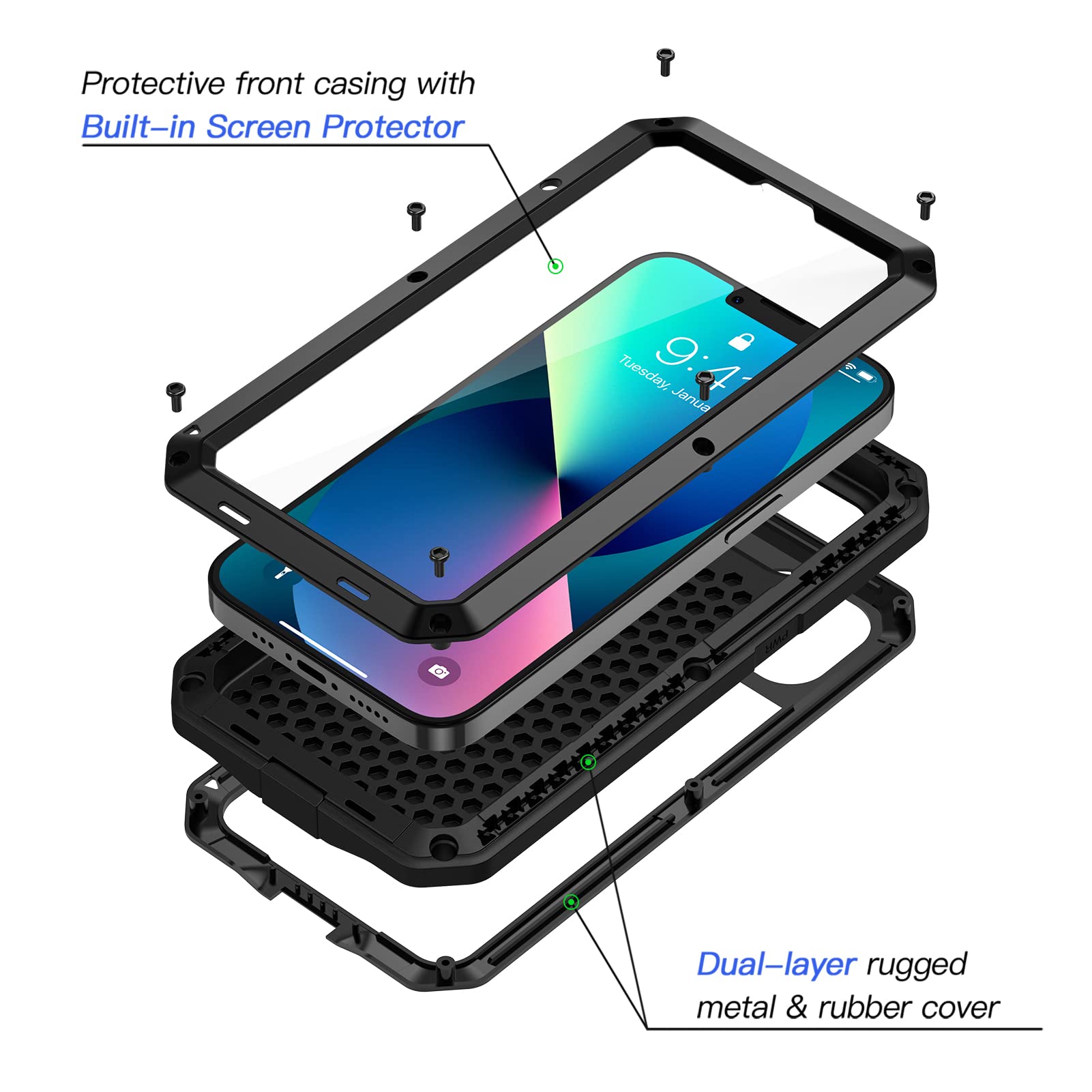 Your iPhone 13 deserves armor that matches its power. Forget flimsy, generic cases sold in India that offer little real protection. The Lanhiem Metal Case is engineered for extreme durability. This heavy-duty, shockproof cover provides 360° protection, featuring a robust metal frame and a built-in glass screen protector to guard against drops, scratches, and impacts. Imported directly from the USA, it offers a level of ruggedness and authentic quality that local alternatives can't touch. Keep your iPhone 13 safe from the hustle of Mumbai streets or accidental tumbles in Bangalore.