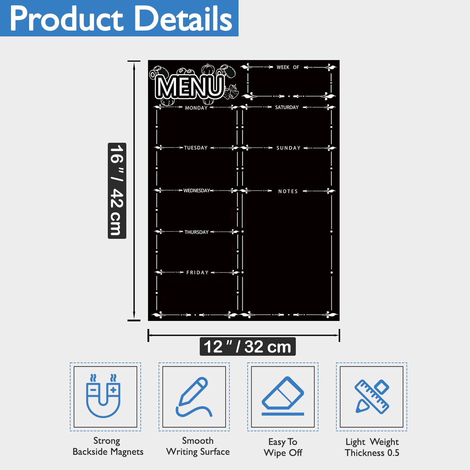 Visually pleasing This magnetic menu board is made with quality and is fun for a growing family that’s always asking what’s for dinner. For use on the refrigerator, the thickness is great.