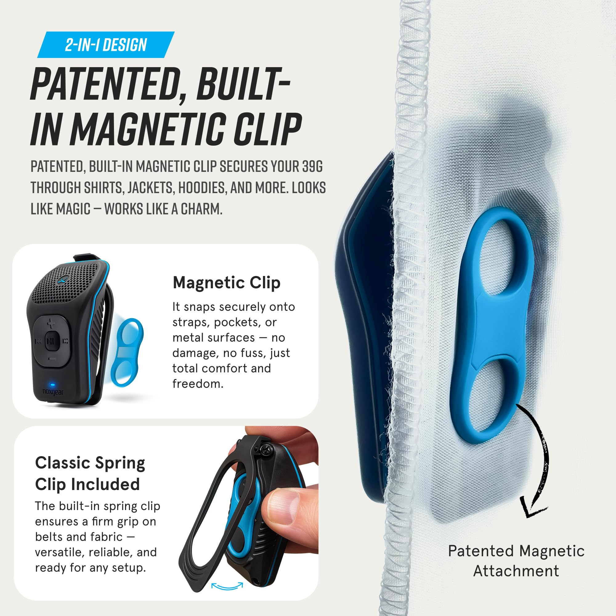 Great TV Speaker This is marketed as a sports speaker, but it has so many uses. Absolutely love this speaker. I am hard of hearing and have used ear buds for years. That prevents me from using my hearing aids. It’s a PITA having to pull the buds out every time someone wants to talk. The nexgear is a great solution. I clip this to my shirt on top of my shoulder and I’m good to go. The battery easily lasts all day. I can put the volume on low and still hear what’s going on around me without disturbing others too much. Phone calls are clear and easy. Volume is crazy loud if needed. No it’s not pristine sound when playing music, but plenty clear for me. Water resistant and everything appears well made. Have not tried the magnet, but the clip is strong. Light enough that it doesn’t pull on my shirt. As an added bonus, it works great as a Bluetooth tv speaker. I attach it to my pillow and can now hear everything with ease. No more getting screamed at by the wife to turn the tv down. That alone is worth the price of admission. One of the few purchases that I have been totally happy with from the start.
