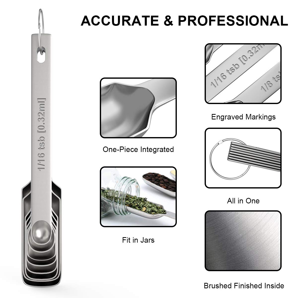 Simple Yet Perfect Upgrade Needed to replace my sad old plastic spoons that had degraded over the years. These were a perfect sturdy replacement. I've had no worries with persistent smells or residue, must easier to clean metal instead of plastic. This set comes with all the sizes you'll ever need, yes even the tiny 'Dash' spoon.