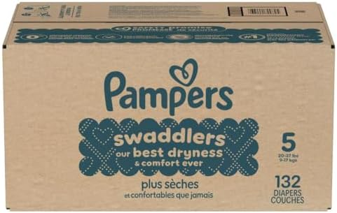 Pampers Swaddlers Diapers, Size 5 (20-37 lbs), 132 Count, Absorbent, Keeps Baby Dry and Comfortable, Skin Safe Disposable Baby Diaper (Packaging May Vary)
